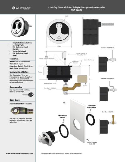 316 Stainless Steel Molded Over Black Nylon, Locking, T-Style Compression Handle