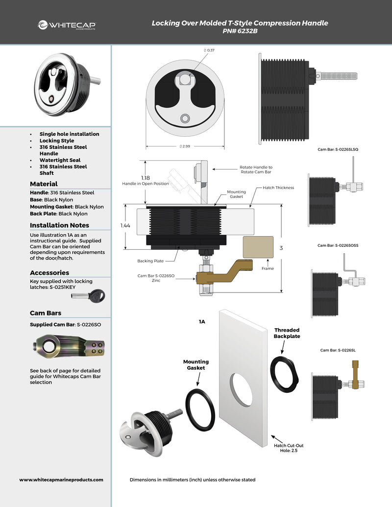 Black Nylon & Stainless Steel Over Molded T-Style Compression Handle Locking