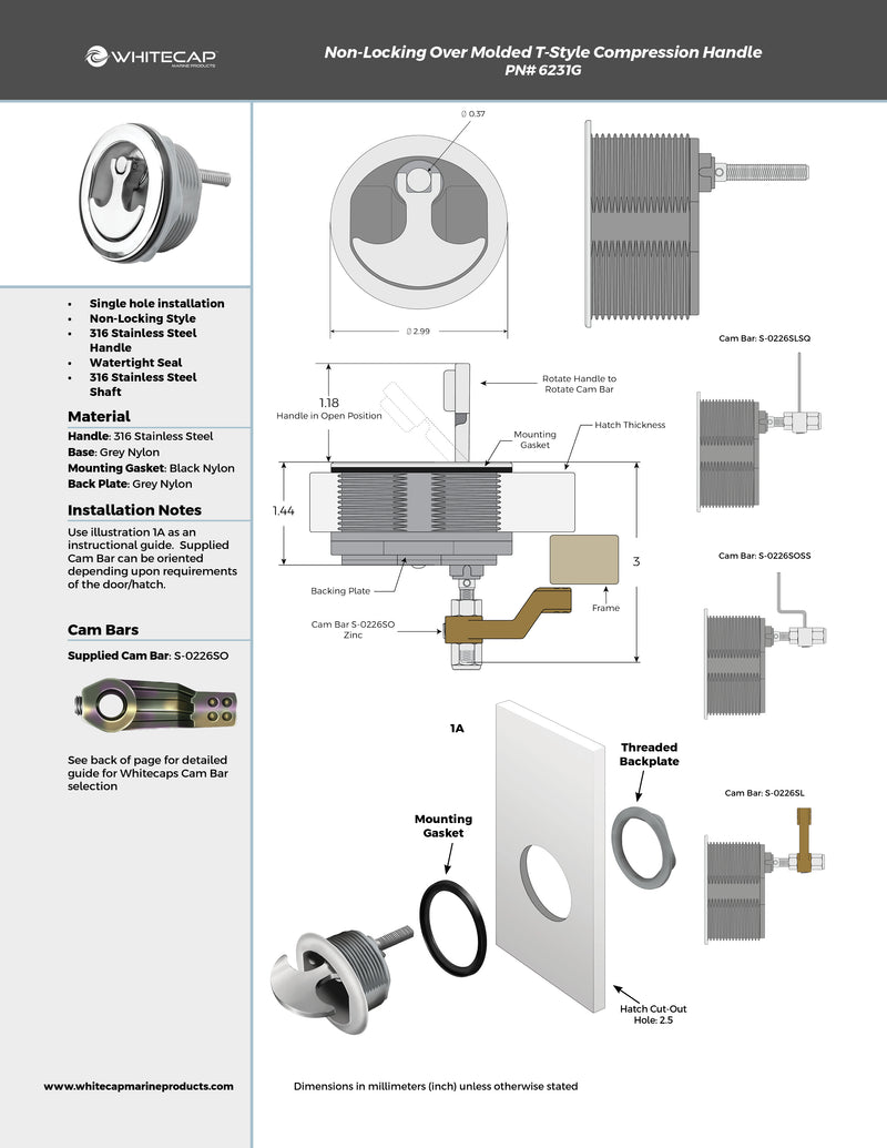 316 Stainless Steel Molded Over Grey Nylon, Non-Locking, T-Style Compression Handle