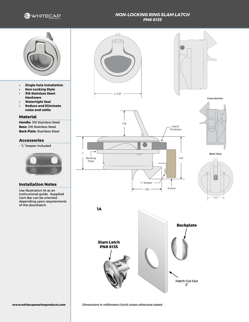 2" 316 Stainless Steel Non-Locking Ring Slam Latch